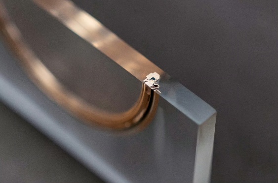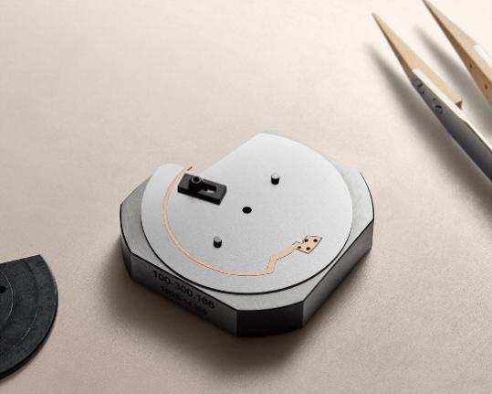品牌研发团队历时三年,通过上千次声学测试,从11种初选材质到8种入围方案,最终变截面红金以无可挑剔的实力脱颖而出,成为造就完美音色的音簧材质。选定材质后,宝珀通过激光调校技术结合微米级手工打磨,将音准误差控制在极致微小的范围之内。搭载品牌专利的磁性调速器,解决了传统自鸣腕表节奏不稳和杂音问题,实现了稳定节奏和纯净音色的完美表现。品牌独创的专利80微米金质振膜,拥有惊人的共鸣生命力,它不仅实现了音量放大,更在纯净音色中精准还原了声音的丰富纵深,令每一响鸣报都成为引领行业的声学杰作。