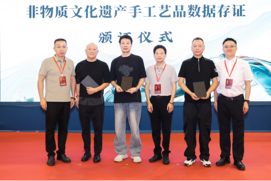 开幕当天举行了一场具有前瞻意义的仪式——“中国质量认证中心非物质文化遗产手工艺品数据存证证书颁证仪式”。苏州市市场监督管理局个私处处长黄东远、中国质量认证中心南京分中心副主任石巍以及中国工艺美术大师、苏州工美苏作技艺研究中心副理事长邢伟中共同为中国工艺美术大师俞挺以及江苏省工艺美术大师瞿利军、葛洪三位代表颁发了首批证书。此举明确释放了以数字化认证驱动工艺美术行业高质量发展的信号。